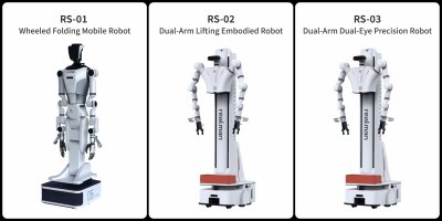 RS-02: Dual-Arm Lifting Embodied Robot, RGB + depth vision, dual 7-DOF arms, 9 kg payload per arm, Six-axis force sensing + overhead fisheye perception.